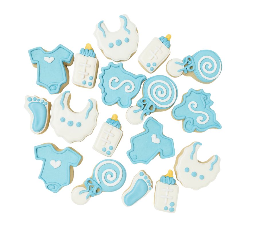 The perfect cookies for your baby shower, baby sprinkle or as a gift! Each set of bites is made with our incredible sugar cookie recipe, thick soft and oh so yummy, shipped in our signature pink and white box.