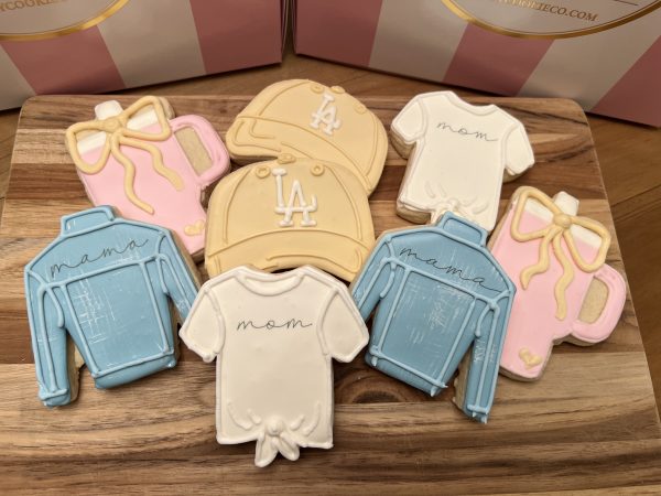Send mom this super cute “Cool Mom” set of 12 cookies that is sure to please! Each cookie is made with our incredible thick, yet soft sugar cookie recipe, heat sealed in bags and shipped in our signature striped pink and white box.