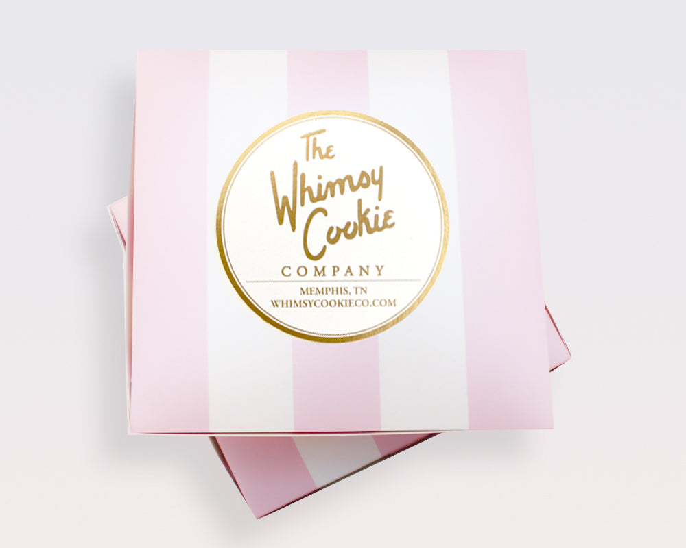 Each set of 12 cookies is made with our thick, soft and yummy sugar cookie. Each cookie is sealed in a clear cello bag and shipped in our signature pink and white box.Â