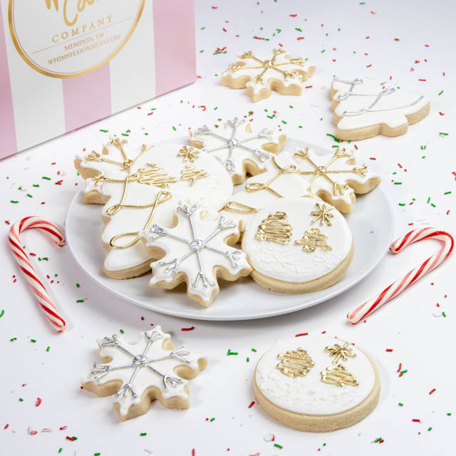 Each set of 12 cookies is made with our thick, soft, sugar cookie recipe. Each cookie is sealed in a clear cello bag and shipped in our signature pink and white box.