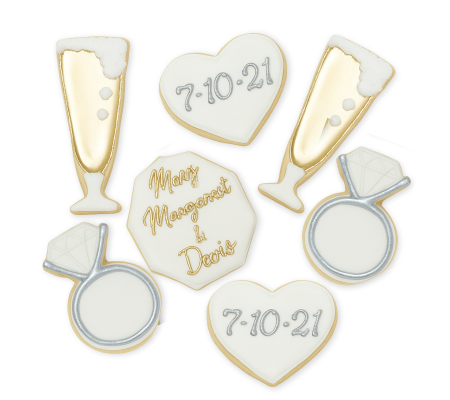 Lets celebrate the bride!! Each set of 12 cookies is made with our incredible sugar cookie recipe, thick, soft and oh so yummy. Each cookie is heat sealed and shipped in our signature pink and white striped box.